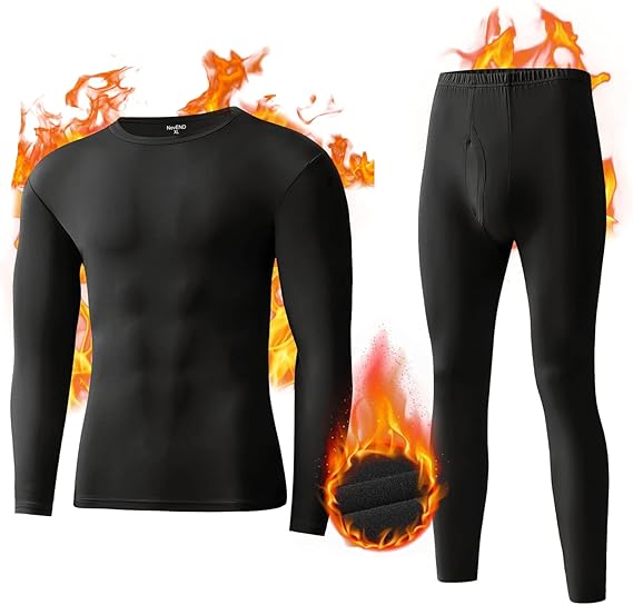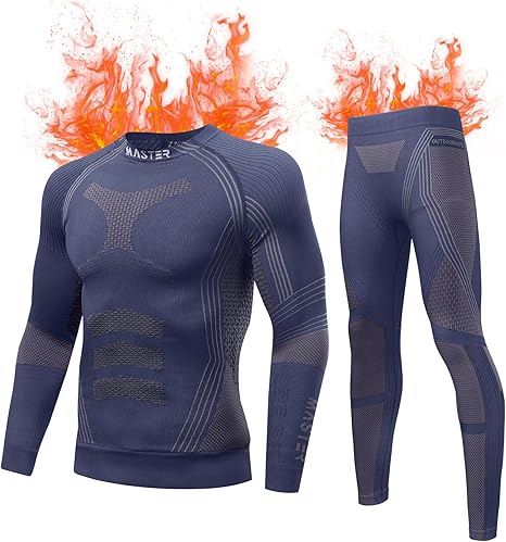 Mens Thermal Underwear Set, Winter Base Layer Long Johns Top & Bottom Compression Cold Weather Gear for Skiing