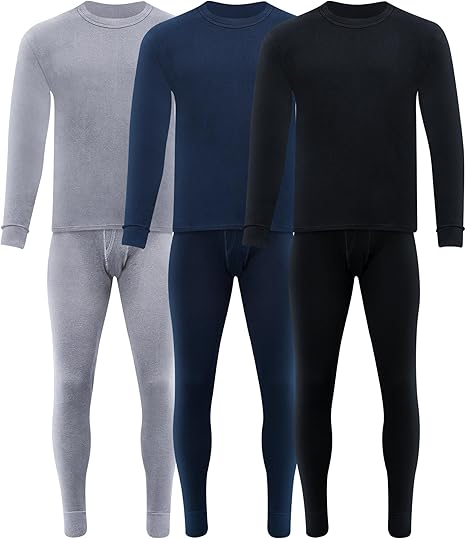 3 Set Thermal Underwear for Men Soft Long Johns Base Layer Thermals Fleece Warm Lined Top Bottom for Cold Weather Winter