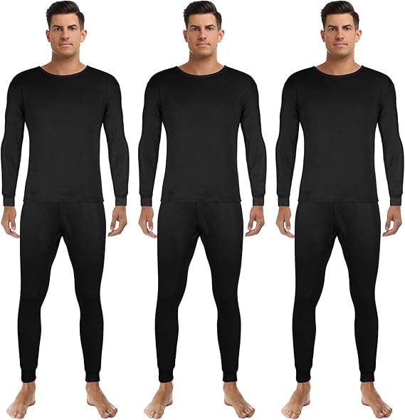3 Sets Thermal Underwear for Men Cotton Johns Thermals Top and Bottom Set Base Layer for Cold Winter
