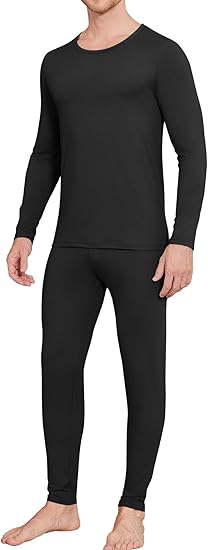 Mens Underwear Soft Thermal Wear for Men, Crew Neck Long Johns Base Layer with Fleece Lined Top & Bottom Set