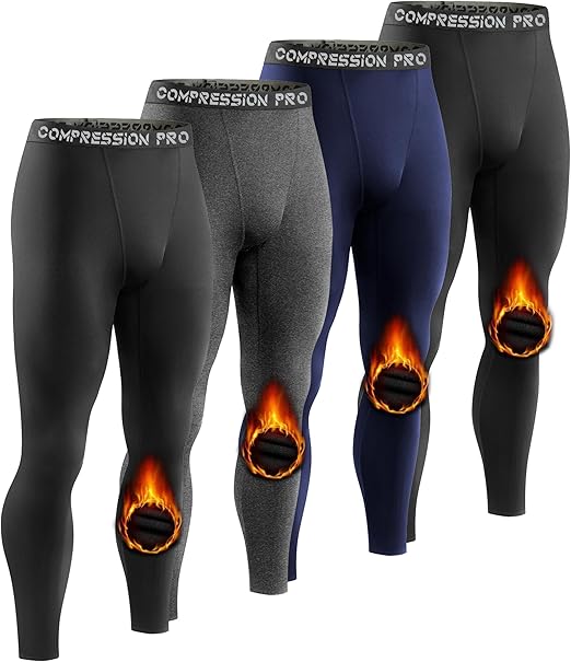 4 Pack Men Thermal Compression Pants,Fleece Lined Heated Leggings for Cold Weather Sports Athletic Winter Baselayer