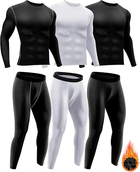 3 Set Winter Thermal Underwear for Men Cold Weather Fleece Lined Top Bottom for Hunting Gear Sport