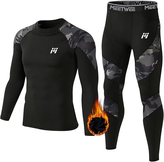 Thermal Underwear for Men, Fleece Lined Base Layer Set Cold Weather Ski Gear Top & Long Johns for Skiing Motorcycle