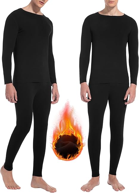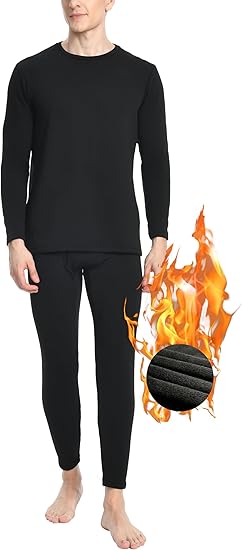 Mens Long Johns Thermal Underwear Set Long Sleeve Shirt Pants Cold Weather Top and Bottoms Base Layer